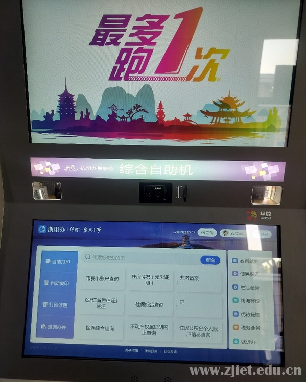 驿站还配备了24小时“一网通办”综合自助机,足不出校就能办理政务事项。目前已同步上线超百项省市通办事项,提供信息查询、公积金、社保卡、社会保障等多项民生实事政务服务,真正实现了数据多跑路、师生少跑腿的目标。